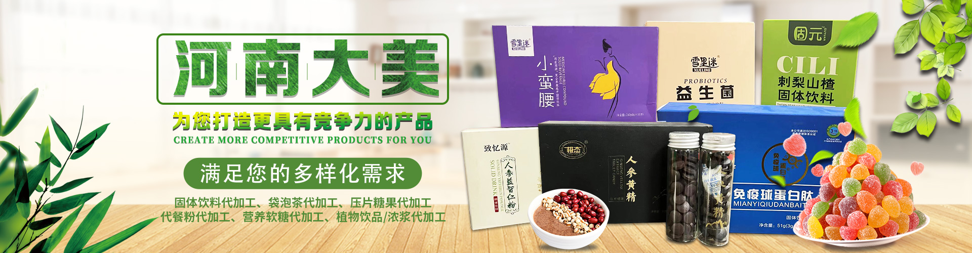 河南大美生物科技股份有限公司是從事顆粒劑、(固體飲料類(lèi)),壓片糖果代加工等研發(fā)和銷(xiāo)售為一體的生產(chǎn)企業(yè)。公司依托自身的高科技研發(fā)隊(duì)伍和營(yíng)銷(xiāo)團(tuán)隊(duì),為國(guó)內(nèi)外客戶(hù)提供營(yíng)養(yǎng)食品各劑型和規(guī)格的研制、生產(chǎn)、配方設(shè)計(jì)、批文申報(bào)等服務(wù),并為客戶(hù)提供多種形式的流通渠道及產(chǎn)品銷(xiāo)售服務(wù)工作。 您的要求就是我們的使命!我們的宗旨是與客戶(hù)“合作共贏(yíng),攜手向前”,共同創(chuàng)造事業(yè)新的輝煌!